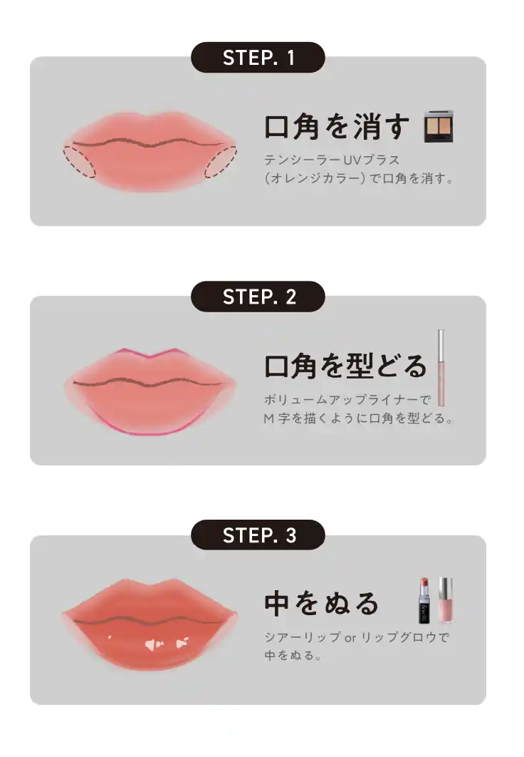 1.「&be テンシーラー UVプラス」のオレンジカラーで口角のくすみをカバーします。 |
