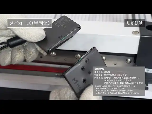 ※上記の参考映像は、半固体・準固体電池であっても製品により安全性が異なることを示す一例です。すべての半固体・準固体電池製品が同様の結果になるわけではありません。 |