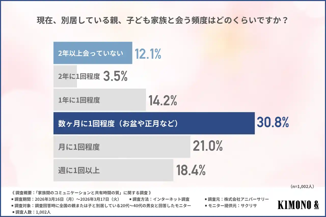 離れた家族に会う頻度は「数ヶ月に1回」が最多、2年以上会っていない層も |