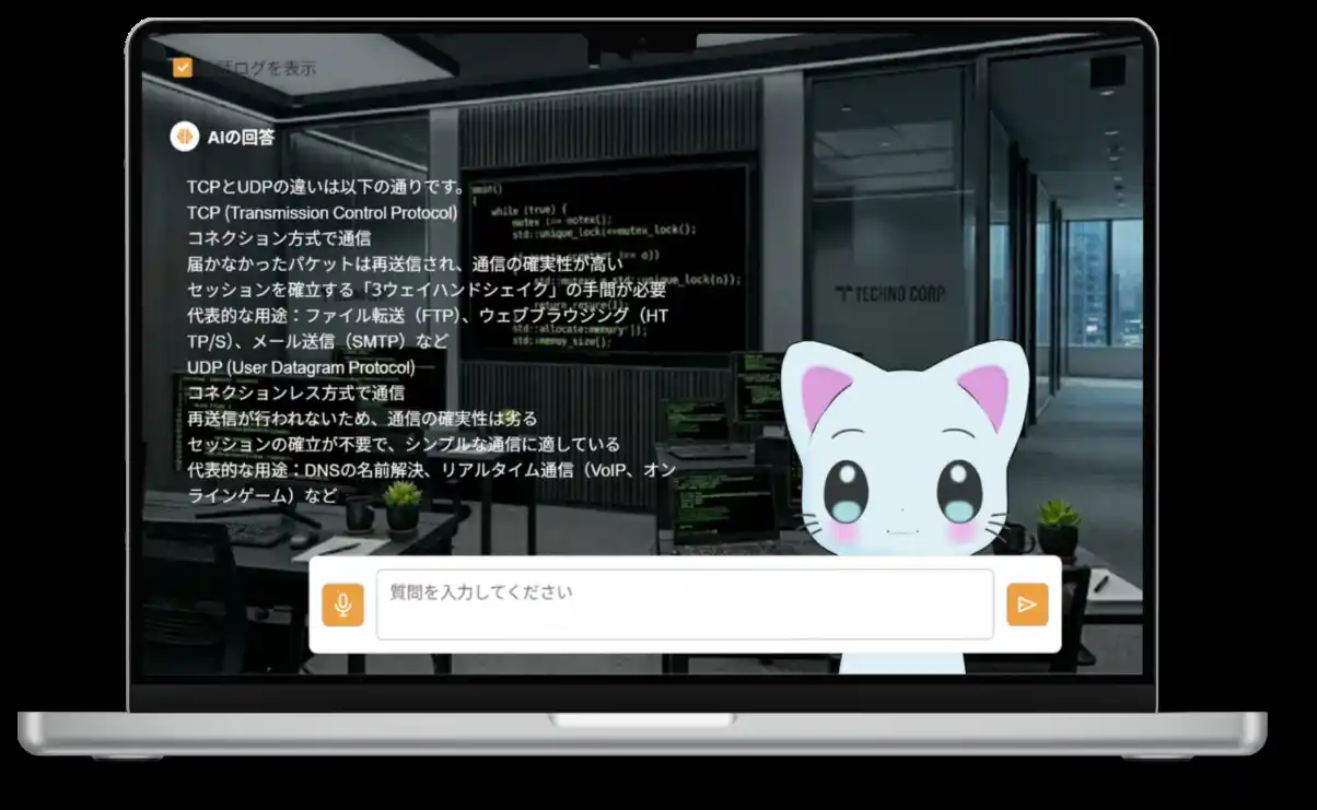 | AIが研修内容に関する質疑応答から復習、理解度確認テストまでを幅広くサポートします。先輩や講師に聞きづらい初歩的な疑問にもAIが即座に回答し、テキストの該当ページまでナビゲート。受講者が「調べ方がわからない」と学習を止める時間を最小化し、場所や時間を問わず、自分のペースで着実にITスキルを習得できる環境を実現します。 | ||||||||||||||||||||