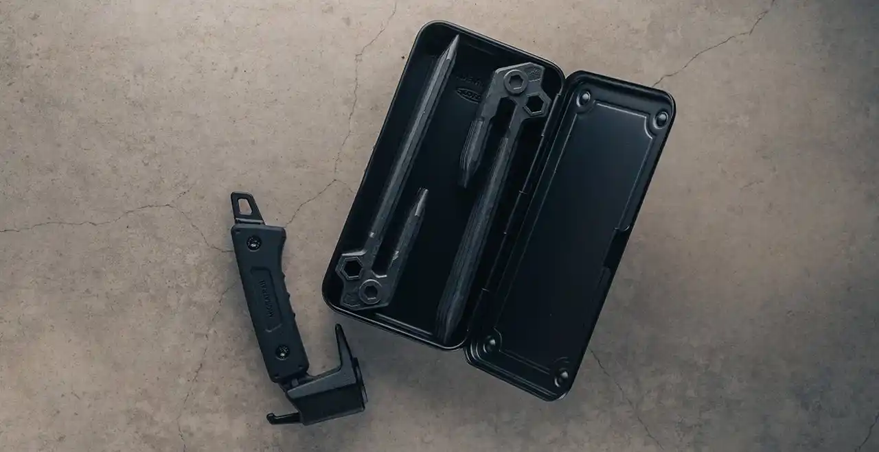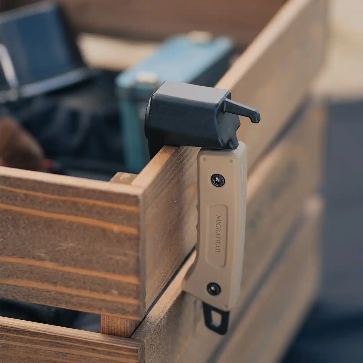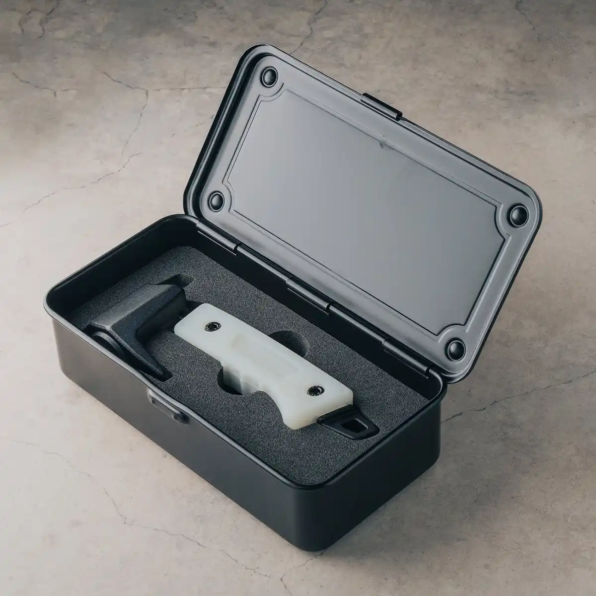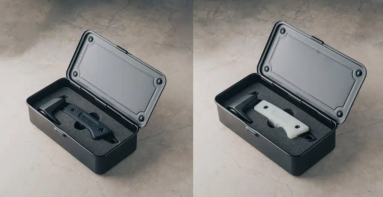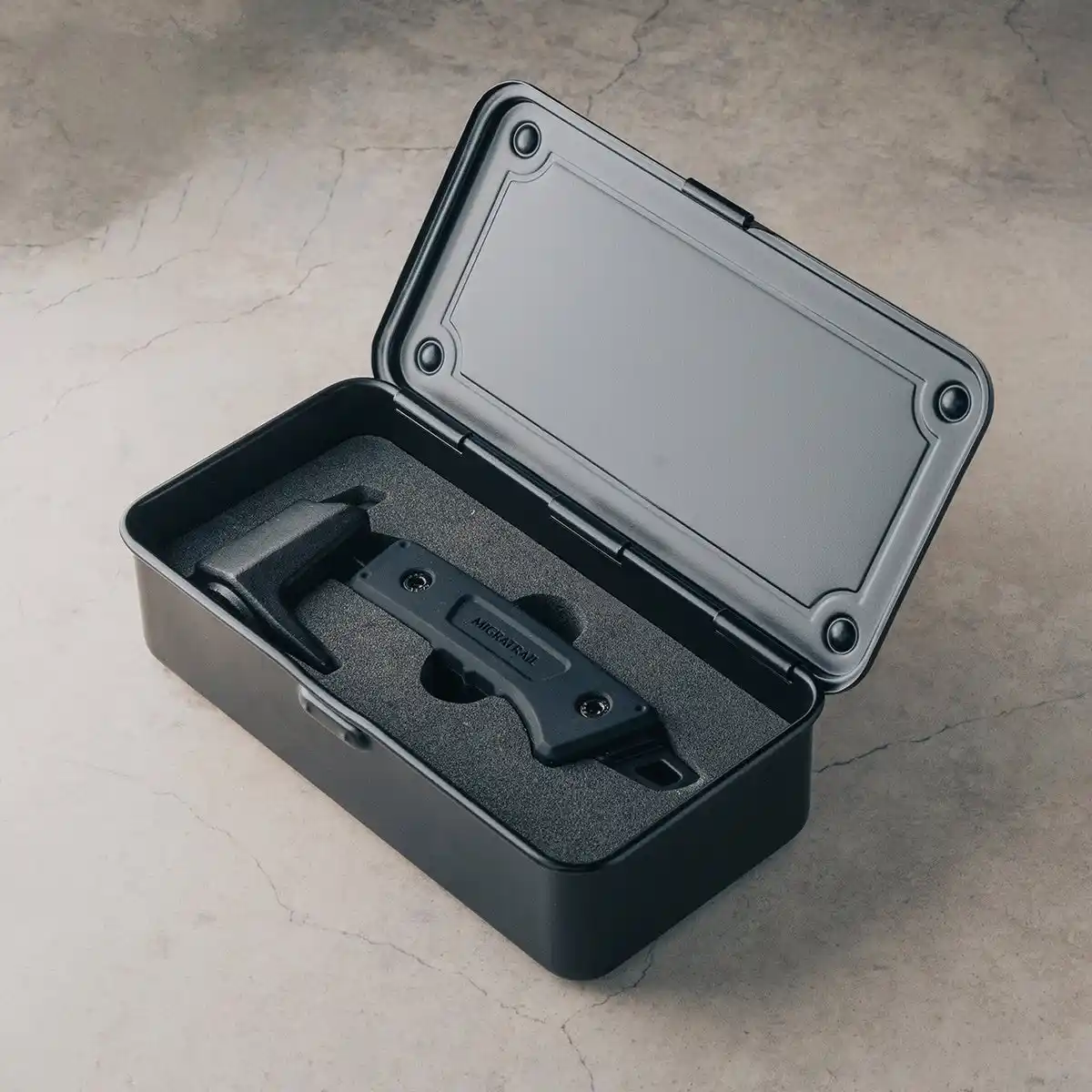 フィットハンマー専用のツールボックス付きをラインナップ。TOYOスチールとコラボレーションした、MIGRATRAILオリジナルデザインのツールボックスと専用フォームが付属。専用フォームを外すことで、ペグなどを収納できるハードタイプのギアボックスとしても使用できます。MIGRATRAILのペグ「ヘキサステーク」は、ジャストフィットで10本収納可能。フィットハンマーとツールボックスは、使い込むほどに味わいが増していきます。 |