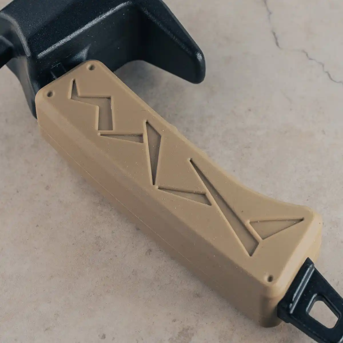 ハンマーヘッドと持ち手が近い構造でも振動が手に伝わりにくいよう、握りやすく滑りにくいシリコングリップを採用。内部ボルトはロック構造とし、不意にグリップが抜けることを防ぐ。 |
