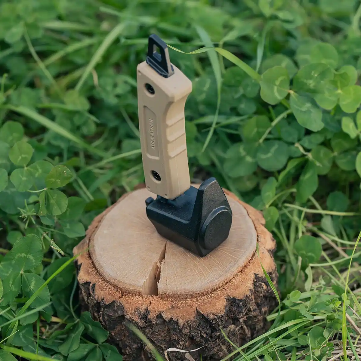 キャンプ用のコンパクトペグハンマー。 コンパクトハンマーで起こりがちな「打ち損じによる怪我」「振動の伝達」「パワー不足」といった弱点をすべて解消。強靭かつ安全を考慮したミニマムデザインのハンマーが誕生。 |