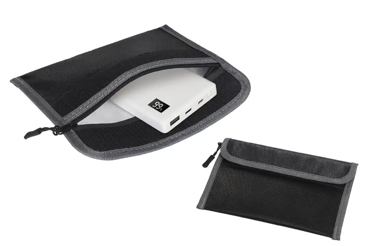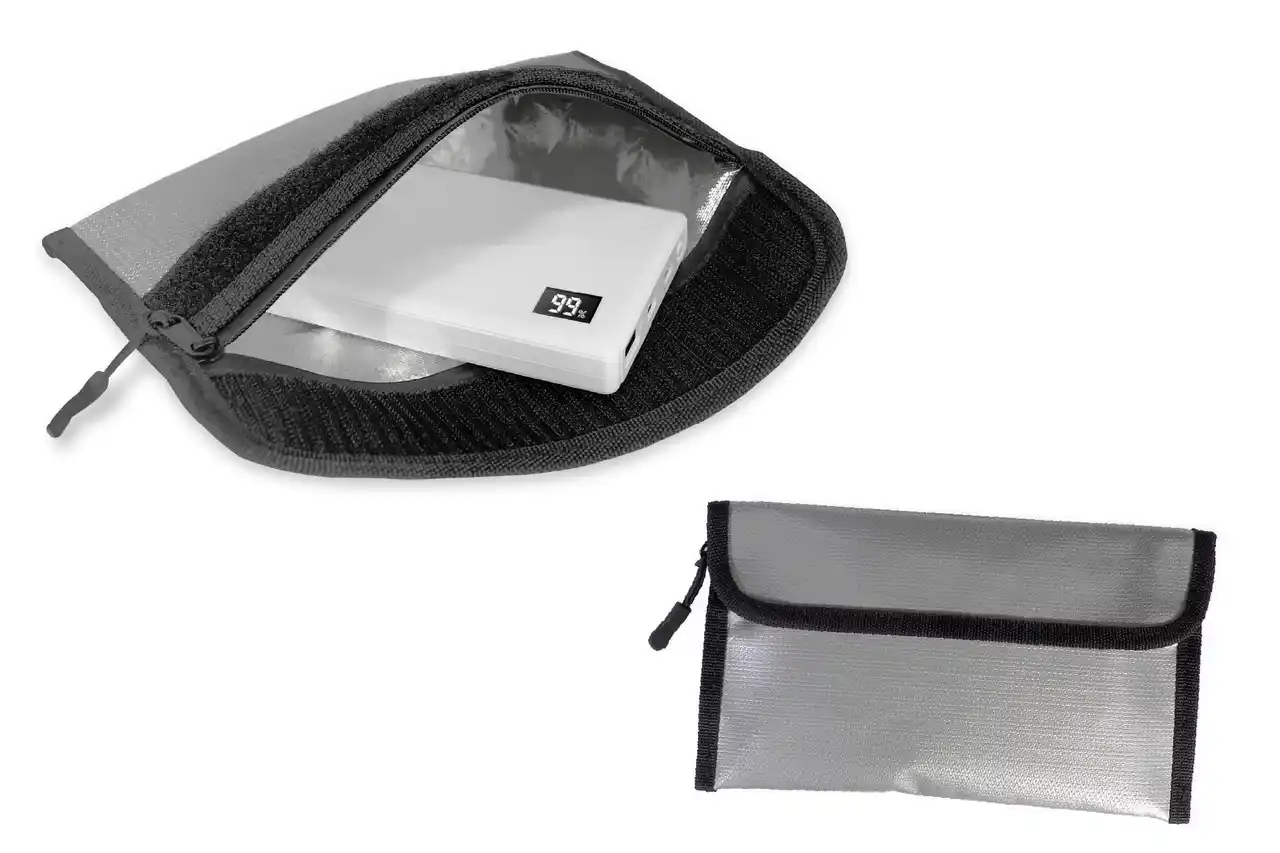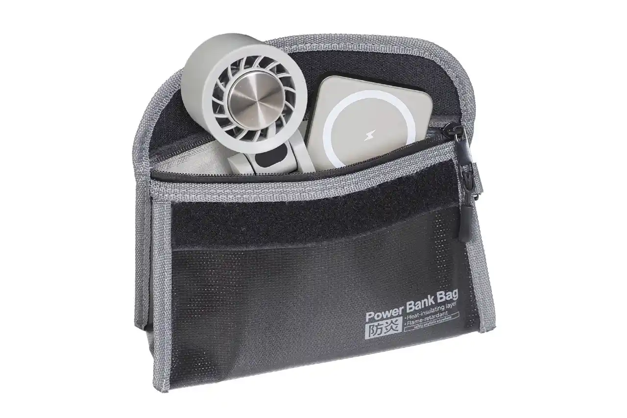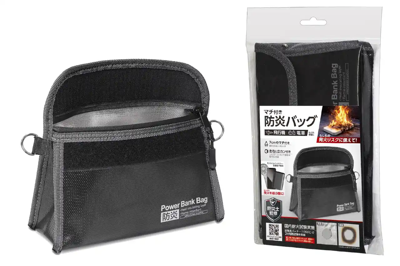 近年問題となっている、リチウムイオン電池などの過充電や劣化による炎上対策に。電車や飛行機での移動時は防炎ポーチや防炎バッグに入れて持ち運ぼう! |