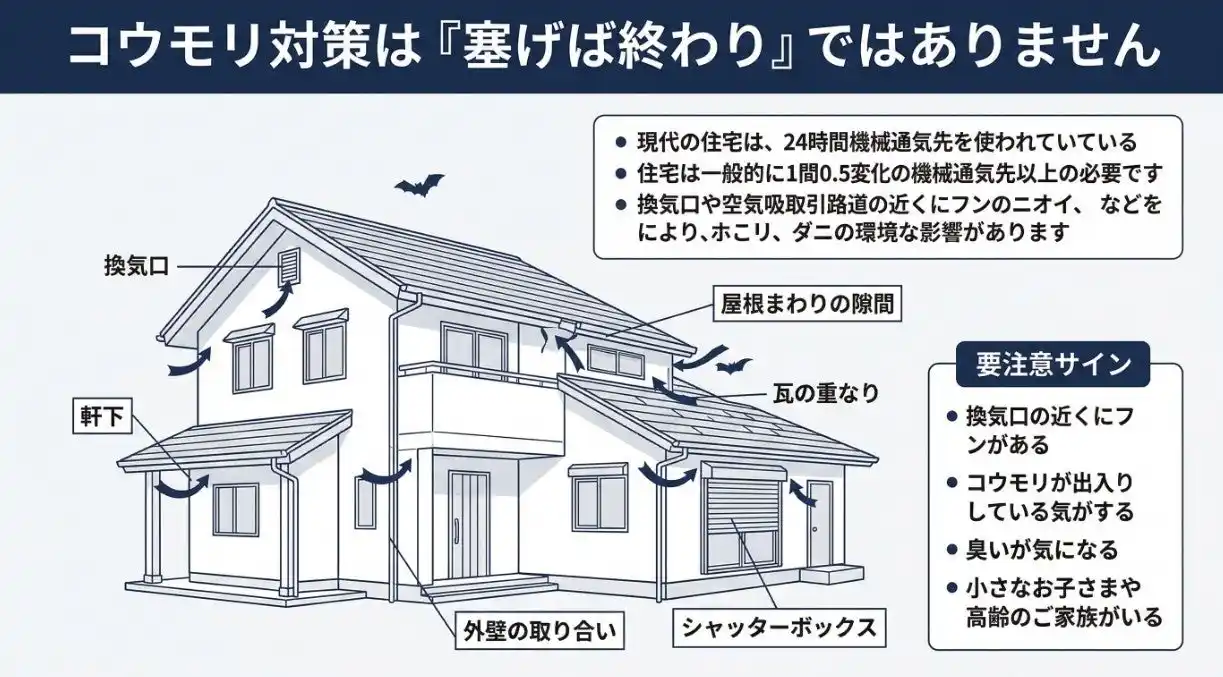 | ■ コウモリ対策は「塞げば終わり」ではありません 家を守るには建物の知識が必要です | ||||||||||