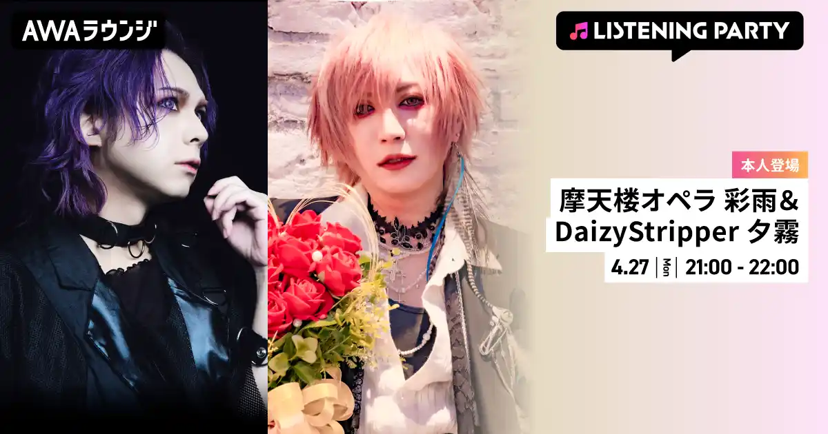 | 【本人登場】摩天楼オペラ 彩雨&DaizyStripper 夕霧 『ABC & Janne Respect Talk session ~愛の調べ~』」開催記念リスニングパーティー on AWAラウンジ | |||