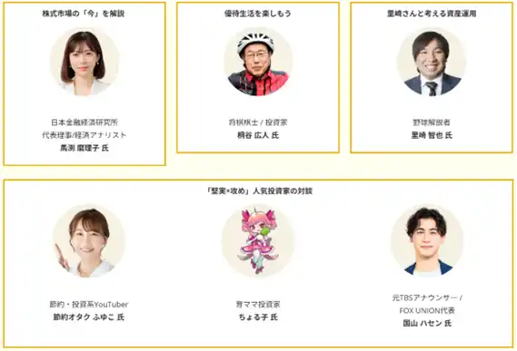 会場では、3日間を通して全120本のセミナーを開催。 将棋棋士・投資家の桐谷広人氏による「優待生活を楽しむ極意」や、節約オタクふゆこ氏と、3億稼いだママ投資家として注目を集めるちょる子氏の「堅実×攻め」対談、さらには経済アナリスト馬渕磨理子氏による「2026年の株式市場のシナリオ解説」まで、著名講師が連日登壇します。 |