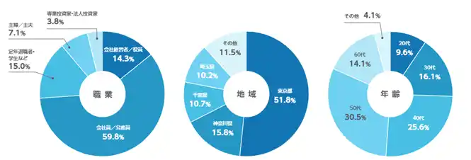 【経営者・役員層(約14%)】 経済動向を敏感に捉える層。マクロ経済の先行きや、事業と投資をどう両立させているのか、一段高い視点でのインタビューが可能です。 |