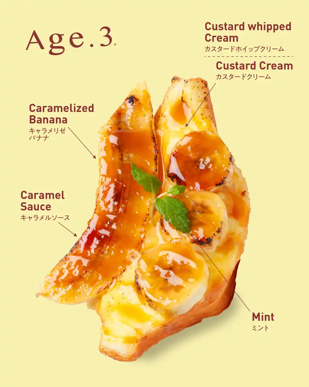 【商品概要】 商品名:バナナブリュレ(BANANA BRÛLEE) 発売日:2026年5月1日(金) 販売店舗:Age.3 国内全店舗 |