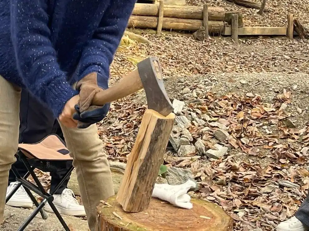 “ストレス解消”ともいわれる薪割り体験 |