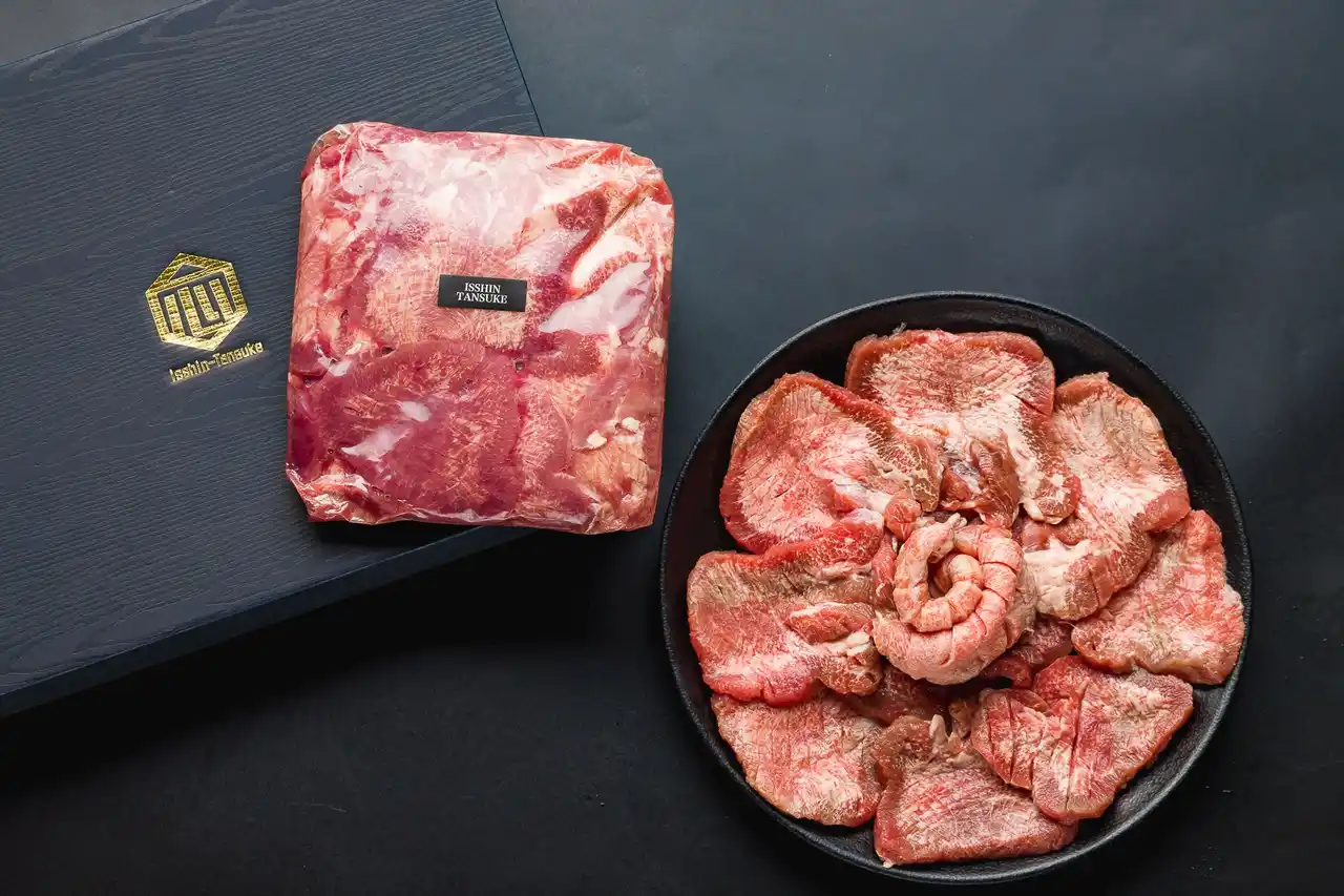 | 一心たん助の牛タンは、牛タンの本場・仙台で受け継がれてきた伝統の仕込み技術をベースに、専門店ならではの丁寧な熟成加工を施しています。 じっくりと時間をかけて旨味を引き出すことで、牛タン特有のコクと深みを最大限に引き出しました。 その厚みからは想像できないほど、歯切れがよくジューシーな食感は、表面に入れた繊細なスリット(切れ込み)によるもの。 このひと手間が、焼き上げた瞬間の香ばしさと、噛んだ瞬間にあふれ出す肉汁を生み出し、まさに“旨味の爆発”とも言える味わいを実現しています。 口に運べば、その一枚がどれほどの手間と技で仕上げられているかを、体感として感じていただけるはずです。 | |||||||||