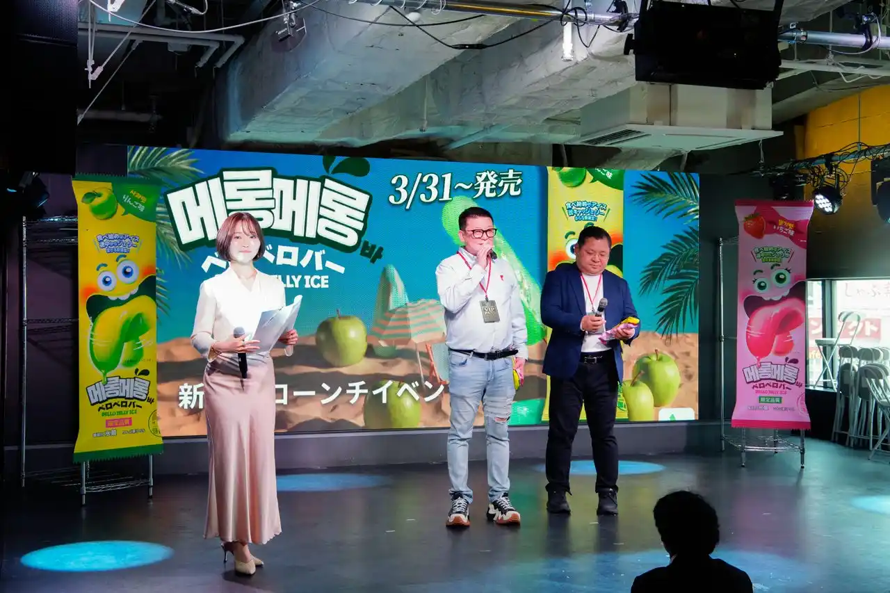 イベントの冒頭、当社取締役会長の立川光昭は、昨年話題となった「3Dフルーツアイス」に触れ、「今回のベロベロバーは、見た目のインパクトだけでなく、食べた後の驚き、誰かに教えたくなる要素が全て揃っている。私の体感でも3Dを超える大ヒットになる」と強い自信を見せました。 |