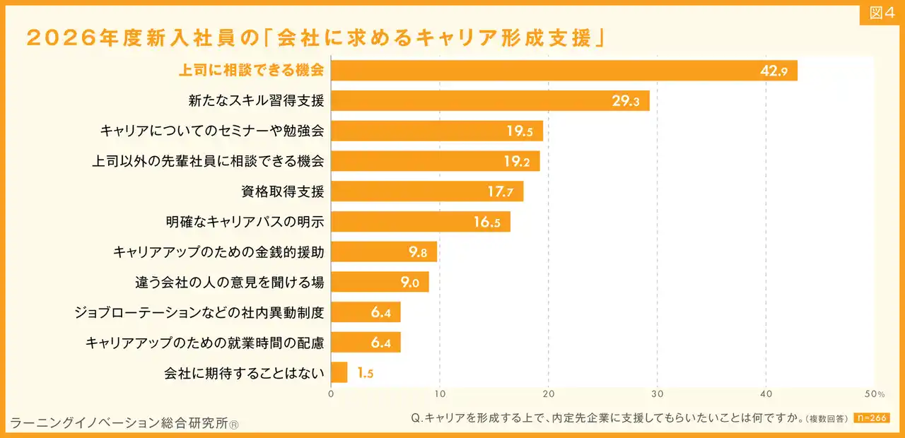 4.会社に求めるキャリア形成支援、「上司に相談できる機会」がトップ。「期待することない」は1.5% |
