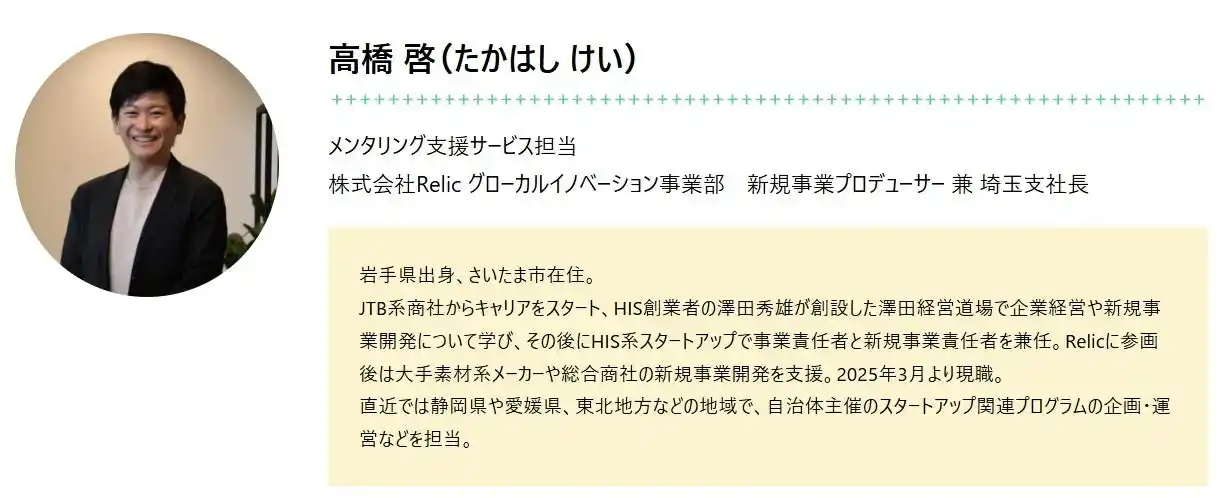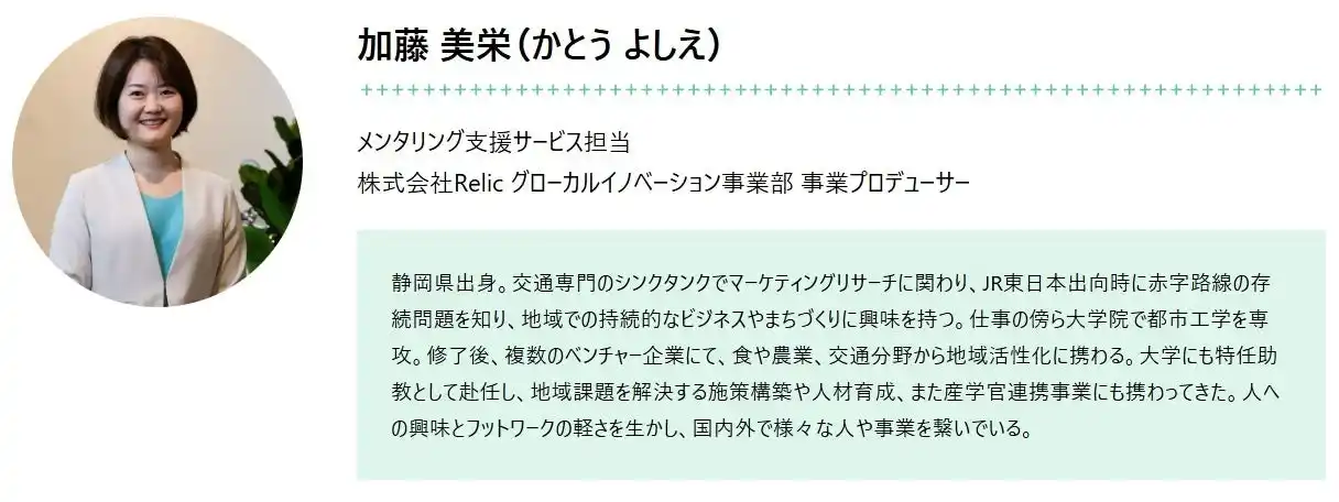 今回のRelic社との連携により、 **「場」+「プロ人材による伴走支援」**を掛け合わせ、地域発の事業創出と成長の加速を目指します。 |