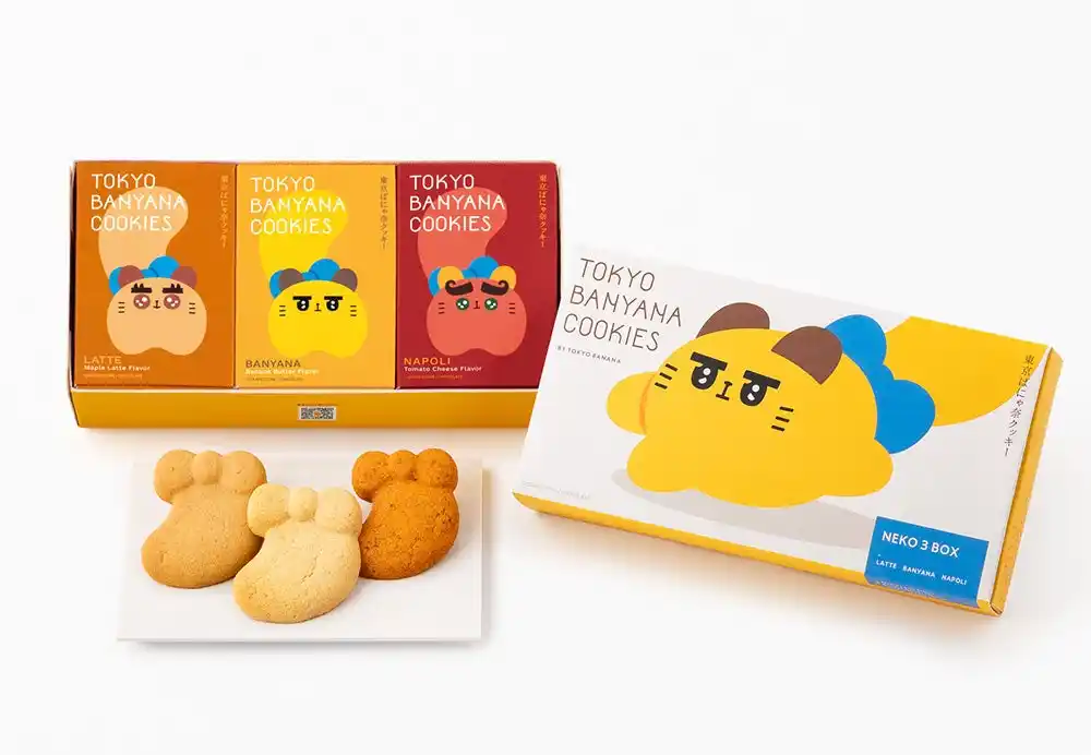 2025年7月、東京ばな奈に新しいキャラクターが誕生!その名も「東京ばにゃ奈」。「ばな奈」ではなく、「ばにゃ奈」です。北海道産発酵バター、旨みを引き出す小麦、口どけの良い砂糖…。厳選の素材から生まれたクラフトクッキーは、東京ばにゃ奈の“しっぽ”のような形にこだわって、ぷっくりとサクほろ食感に焼きあげています。 |