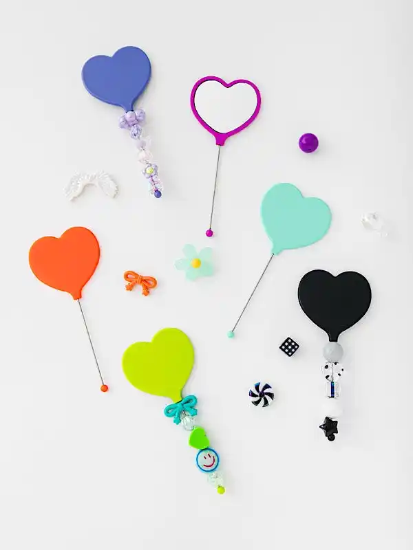 | リボンやハートなど、ときめくモチーフパーツ、ベースのペンやミラーも種類豊富なので、組み合わせは自由自在。 | |||||||||