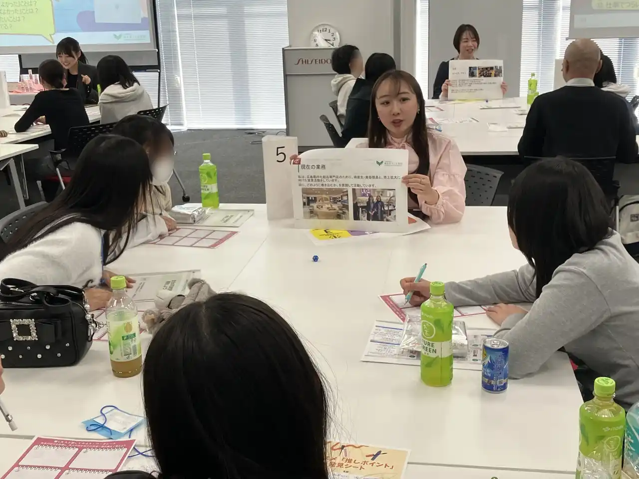さまざまな職種の資生堂社員とのグループトークを実施しました。大人たちが歩んできた人生の歩みや道のり、仕事に対する思い、失敗談、現在の業務におけるモチベーションの源泉など、幅広い対話を通じて将来の自分を考える機会となりました。 |