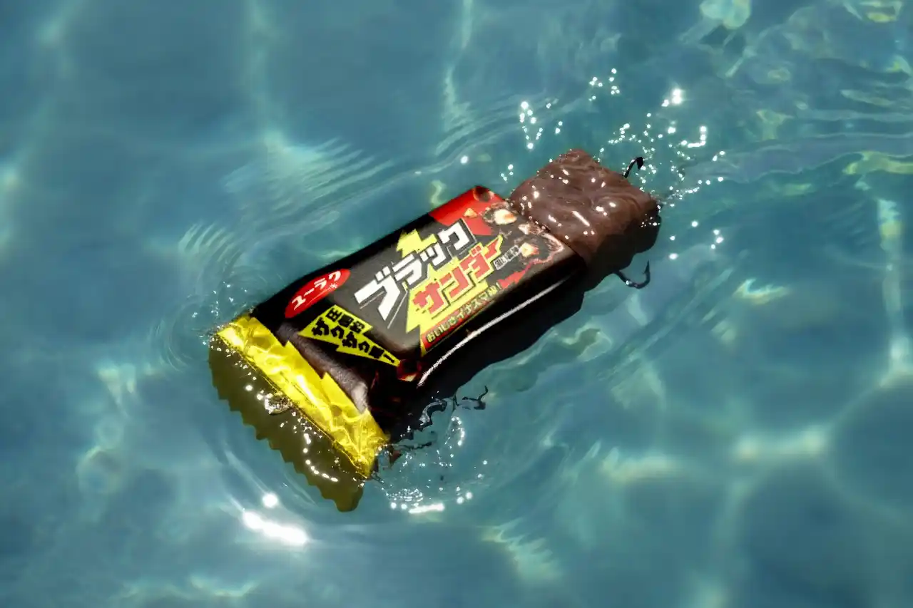 その最新事例が、2026年4月に発売した「ブラックサンダールアー」(釣具メーカーの株式会社デュオとのコラボ。企画:面白法人カヤック)です。「釣りの行動食」としてのブラックサンダーの魅力を、ルアーという意外な形で表現し、発売前から大きな話題を呼びました。 |