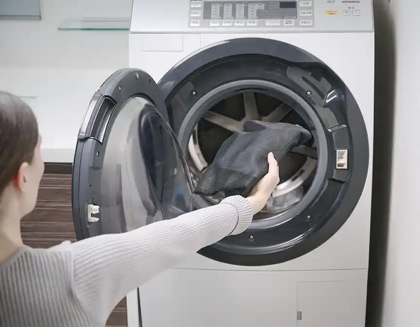 洗濯ネットに入れて洗濯機で洗うことが出来ます。 型崩れしにくくお手入れも簡単で、日常的に気兼ねなく使用可能です。 |
