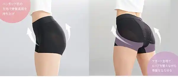 リフトアップ構造によってはくことで骨盤底筋をサポート |
