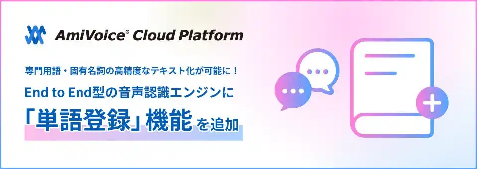 株式会社アドバンスト・メディア(本社:東京都豊島区、代表取締役会長兼社長:鈴木清幸 以下、アドバンスト・メディア)は、開発者向けボイステックプラットフォーム「AmiVoice Cloud Platform(アミボイス クラウド プラットフォーム)」にて提供している、国内シェアNo.1(※)のAI音声認識AmiVoiceを活用した音声認識API「AmiVoice API(アミボイス エーピーアイ)」で提供しているEnd to End方式の音声認識エンジンに、「単語登録」機能を追加しました。