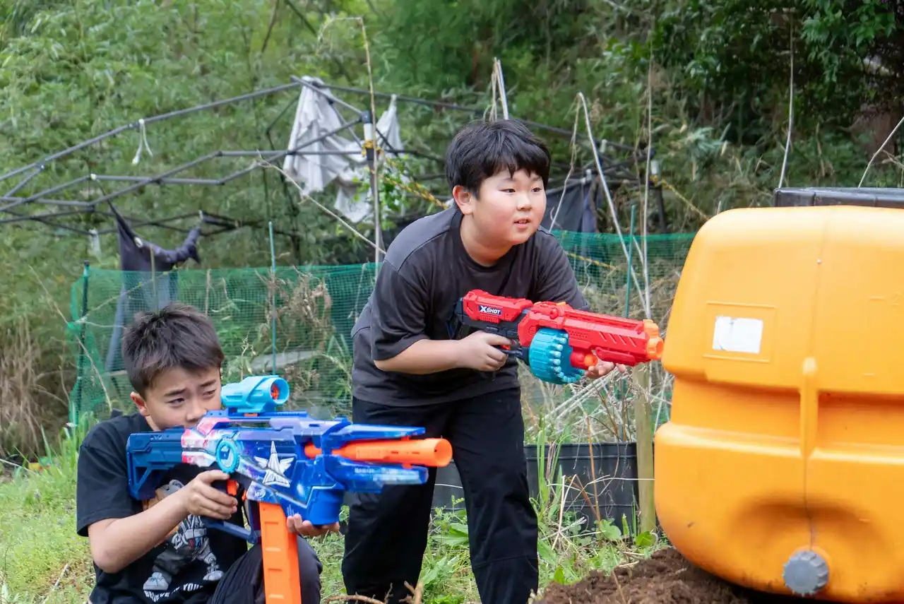 本イベントは、8歳以上のお子さまから大人までが一緒に楽しめる、ファミリー向けの体験型アクティビティ。スポンジ製の弾(ダーツ)を発射するおもちゃの銃を使用したサバイバルゲームです。安全性が高く、小さなお子さまでも安心して参加できるのが特徴です。チームに分かれての対戦やシューティング体験を通して、家族やグループで一緒に盛り上がることができます。 |