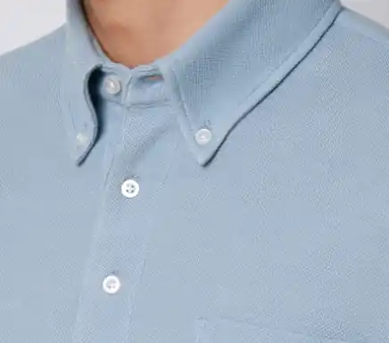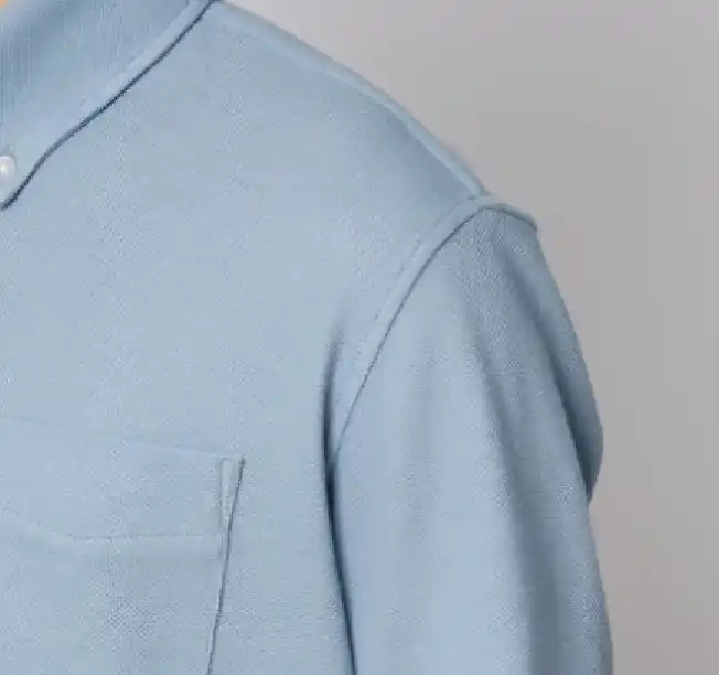 ビジネスシャツの縫製技術を取り入れた立体的な襟まわりにすることできちんとした印象に |