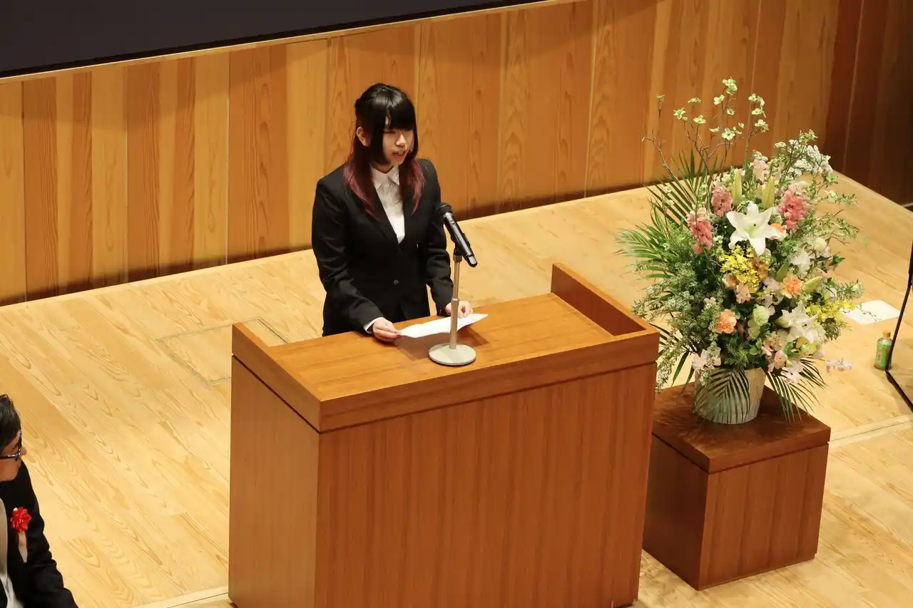 「本学は設立から11年、日本の中国語教育における模範的な存在として、『確かな語学力、広い国際的視野、そして高い社会的責任感を備えた人材』の育成に努めてまいりました。自分自身を超え続ける中で、皆さん一人ひとりの輝かしい物語が紡がれていくことを期待しています。」 |