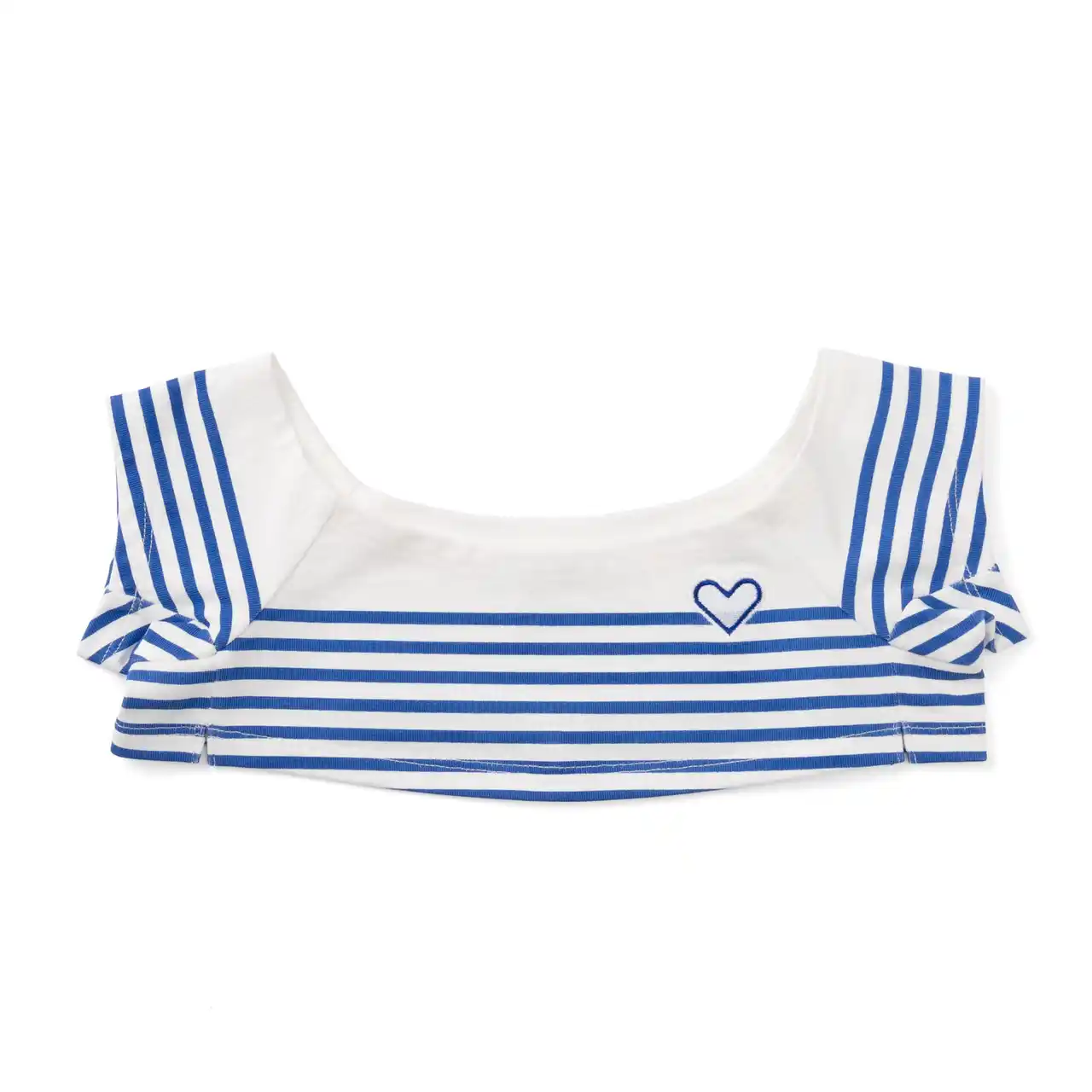 毎日のお着替えがもっと楽しくなる、爽やかなボーダーTシャツ。すっきりとしたホワイトを基調としたデザインに、胸元にあしらわれた「ハートの刺繍」が愛らしいアクセントをプラス。お持ちのベースウェアと合わせやすく、サッと重ねるだけでコーディネートが完成する日常使いにぴったりな一着です。 |