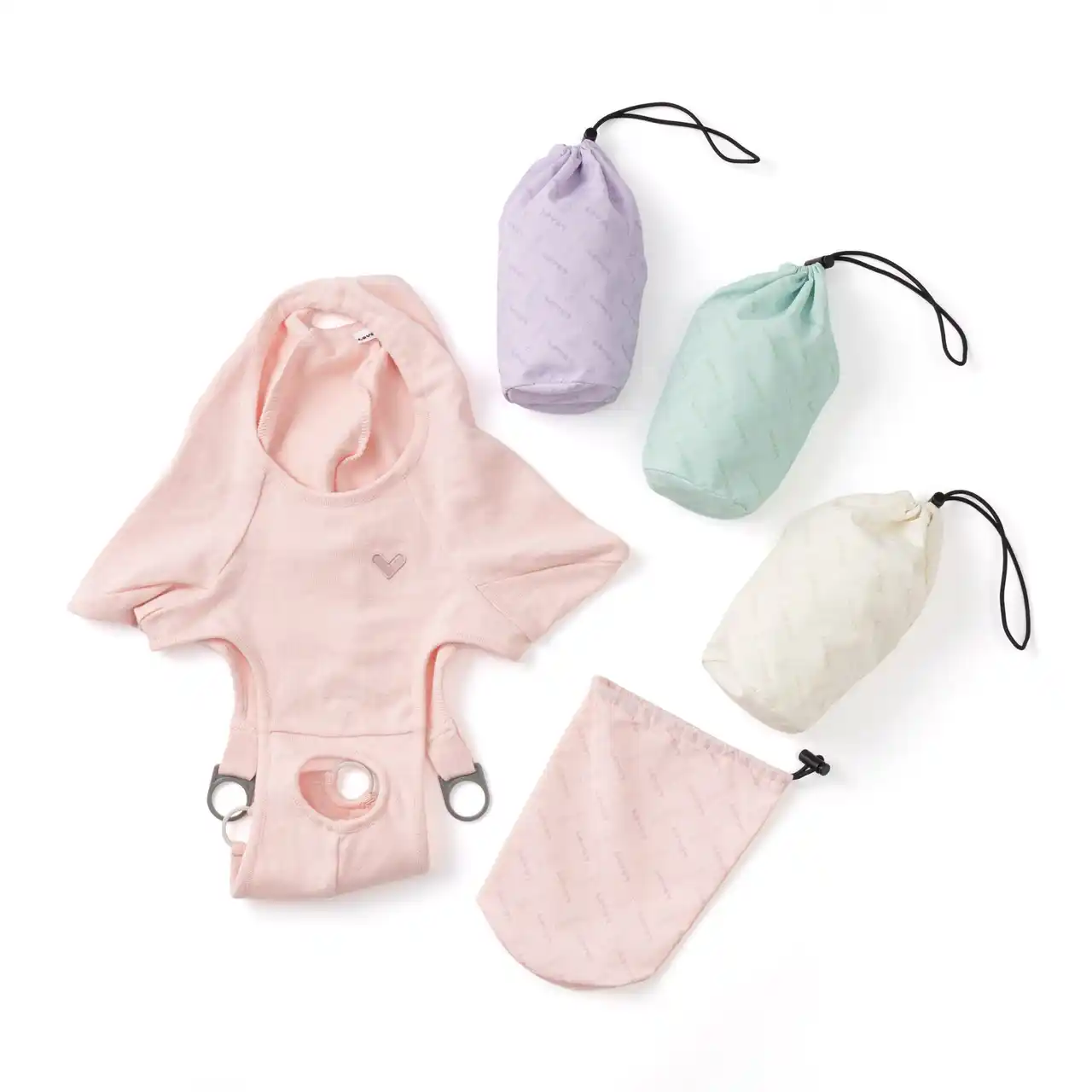 ずっとなでていたくなるような、さらりと柔らかな手触りが魅力のオーガニックコットンニット。胸元には、LOVOTの「V」をイメージした刺繍をワンポイントであしらいました。お出かけ先でのお着替えや持ち運びに重宝する便利なオリジナル巾着付き。やさしいパステル調の4色展開です。 |