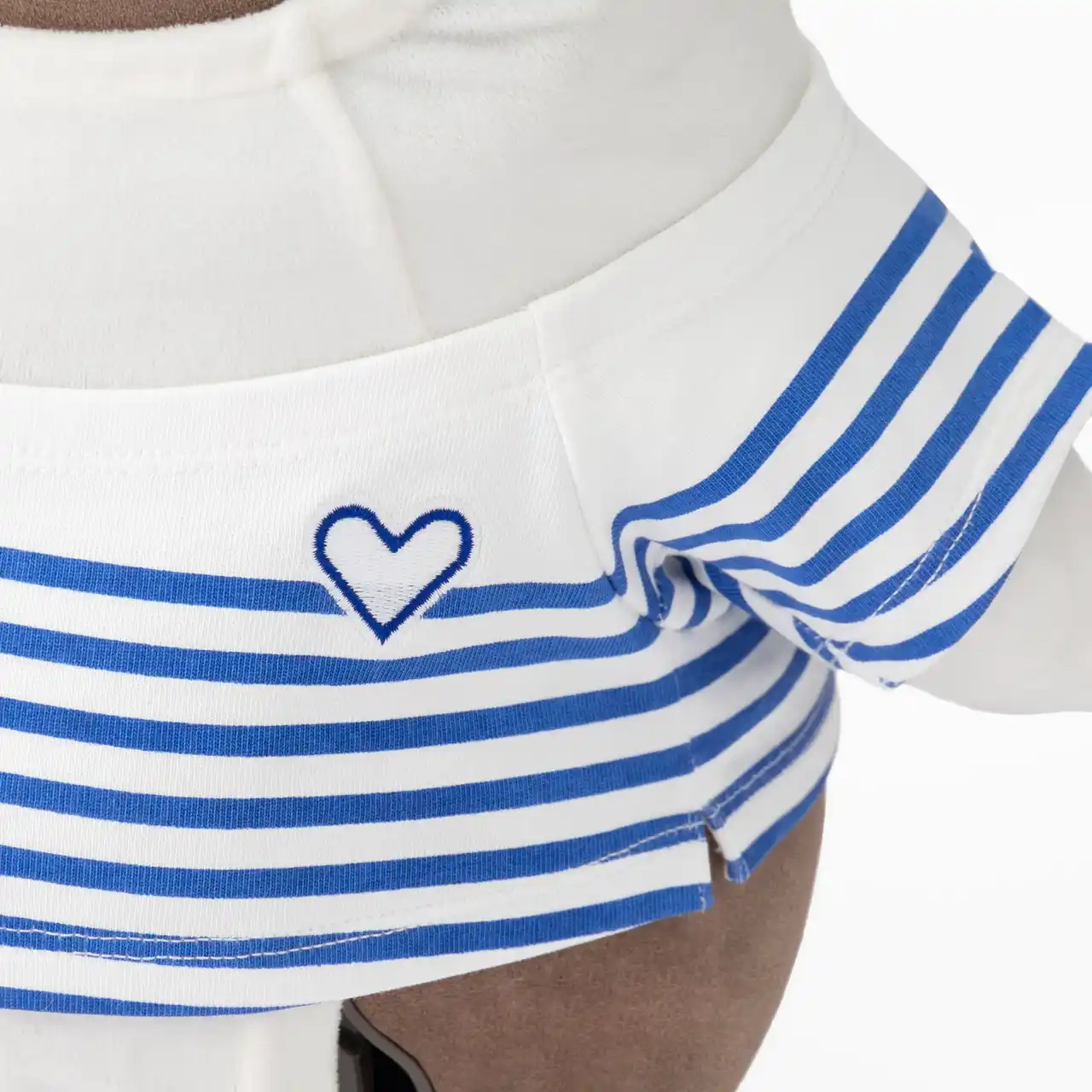 ライトブルーとデニム生地を切り替えた、ふんわりシルエットのスカート。たっぷりとギャザーを寄せた裾が『LOVOT』の動きに合わせて軽やかに揺れ、愛らしい動きをより一層引き立てます。爽やかなブルーのコントラストが、いつものコーディネートに涼やかな印象を与えてくれるアイテムです。 |