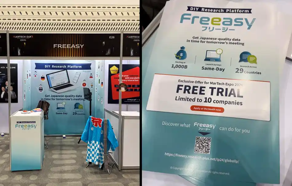 | 年間3万件以上の調査実績を誇る、国内最大級のセルフ型アンケートツール「Freeasy(フリージー)」を展開するアイブリッジ株式会社(本社:大阪市福島区、代表取締役社長:荒川和也)は、海外初出展として、2026年3月24日にタイ・バンコクで開催された「MARTECH EXPO 2026」に参加しました。 | |||||||||