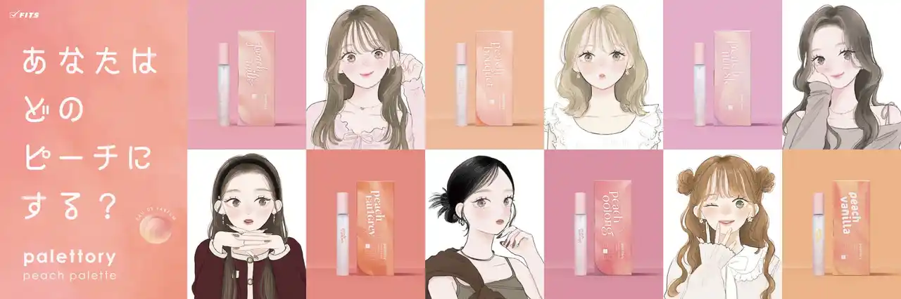 株式会社フィッツコーポレーション(本社:東京都港区、代表取締役:富樫康博)は、ドン・キホーテ限定の新フレグランスブランド「Palettory(パレットリー)」を立ち上げます。コンセプトは「心ときめく旬の香りで、どんな私を表現する?」。ひとつの香りをテーマに、印象の異なる6つの香りをパレットのようにラインナップ。その第一弾として、桃の香りをテーマにした「ピーチパレット オードパルファム(全6種)」を、2026年4月27日(月)より全国のドン・キホーテ系列店舗、アピタ、ピアゴ(※一部店舗除く)で発売いたします。 |
