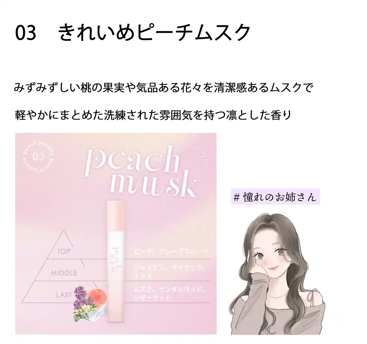 “きれいめピーチムスク”で洗練された私に。 |