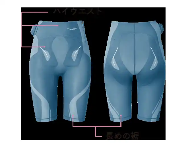 2.電極の厚み、ハイウエスト、裾の長さでフィット感UP |