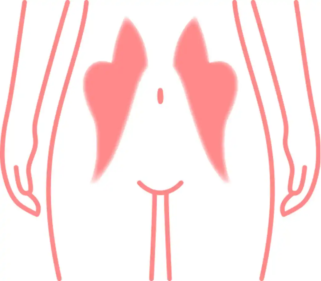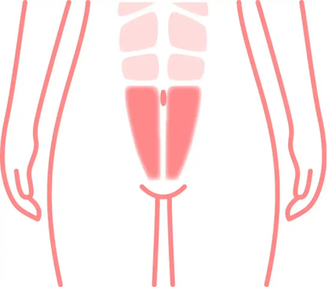 アプローチ部位:腹直筋下部、腸腰筋、大臀筋、骨盤底筋 |
