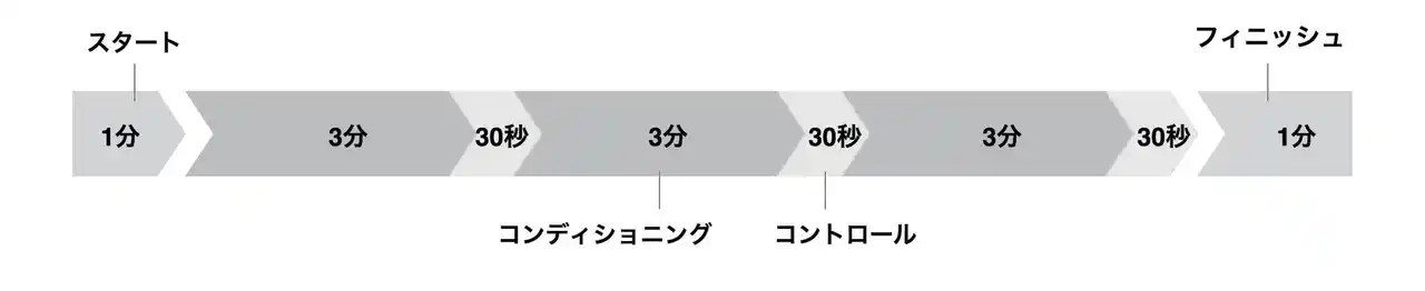 アウターマッスルとインナーマッスルの4つの筋肉を最適にトレーニングするために計算された23分のプログラムです。ウォームアップからトレーニング、そしてクールダウンまで自動的に切り替わります。 |