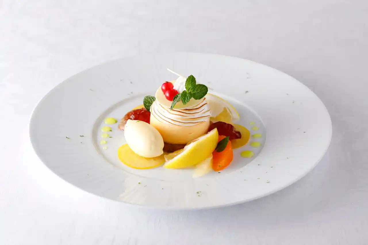 甘味を含んだ瀬戸内レモンと、その果汁を贅沢に使用し、タルトシトロンに仕立てました。今しか味わえない国産のグレープフルーツと、華やかな香りが広がる「銀座のはちみつ」のアイスクリームとのマリアージュをご堪能ください。 |