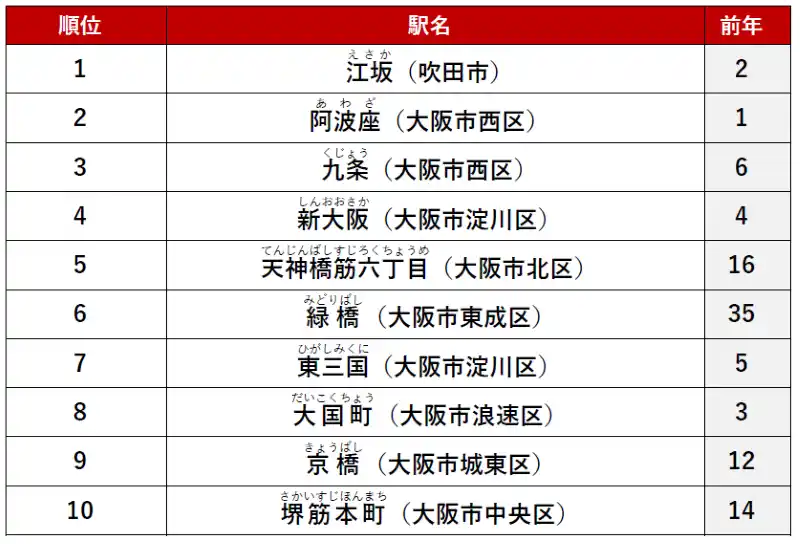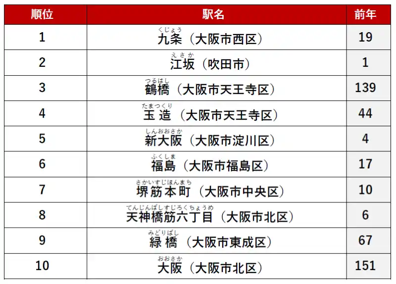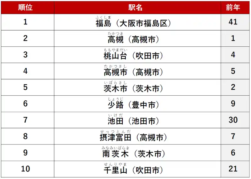 「アットホーム 賃貸・駅ランキング大阪府編」 調査結果 |