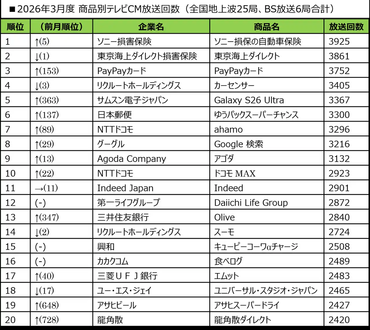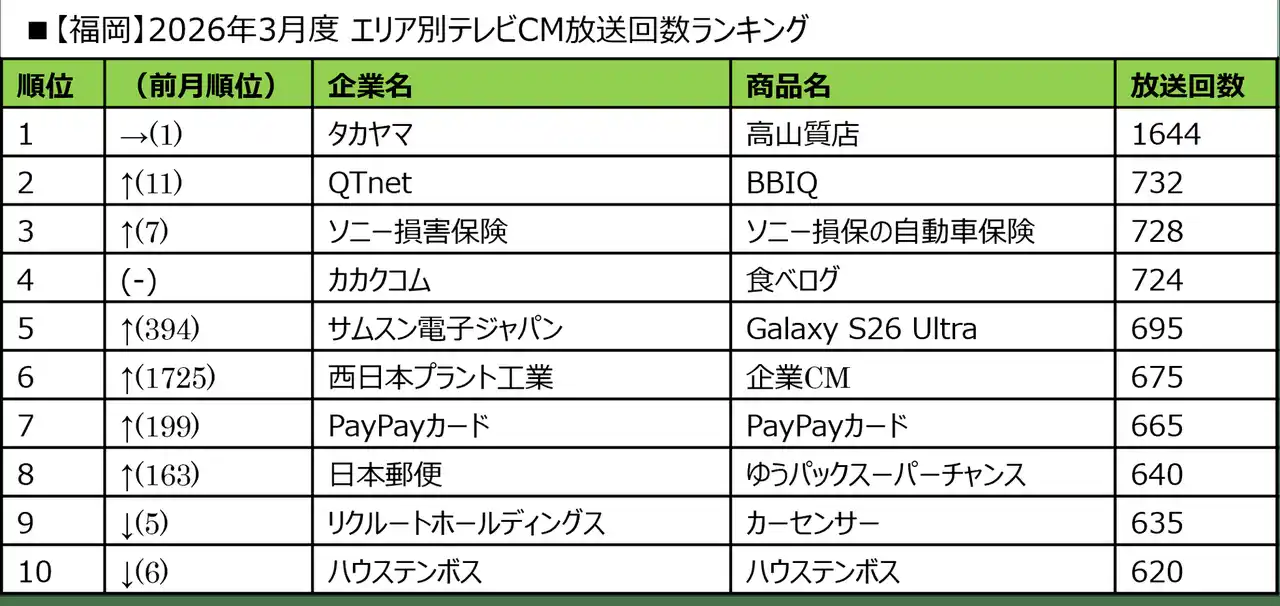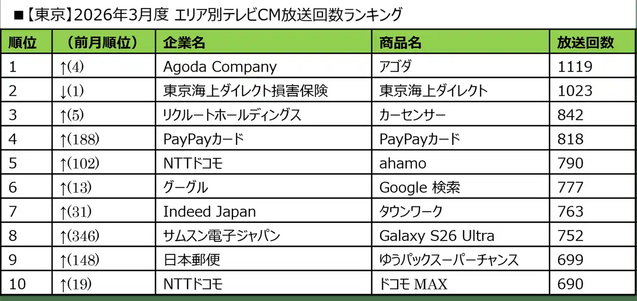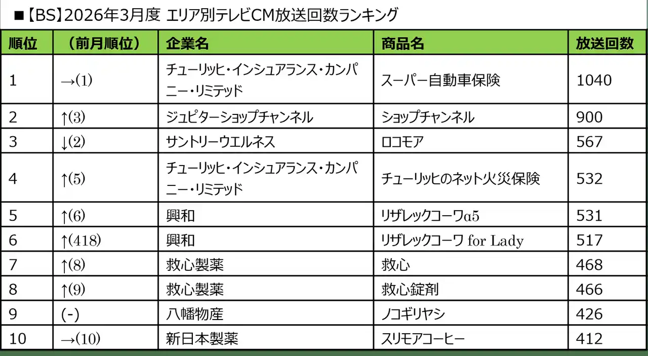 ■2026年3月度 商品別テレビCM放送回数ランキング |