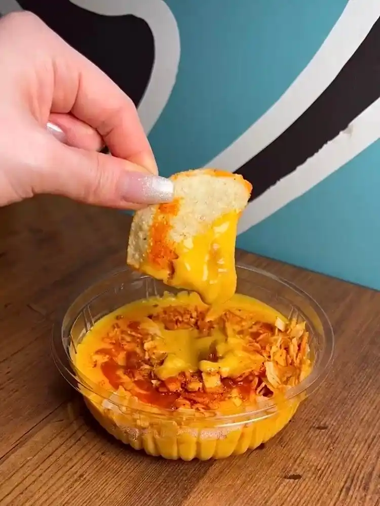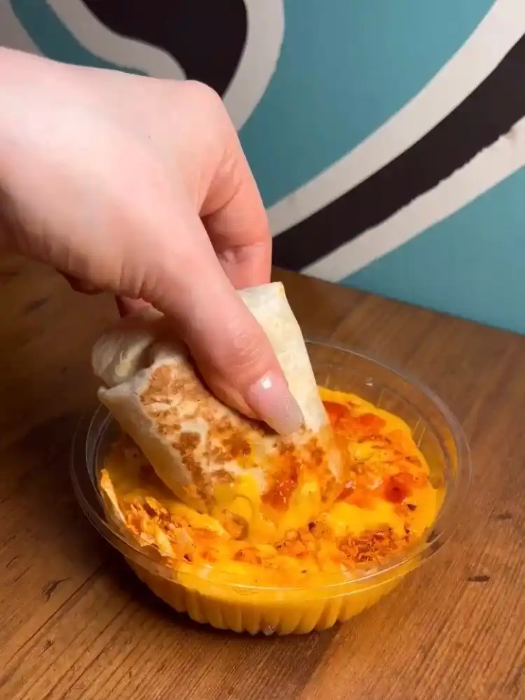 【チーズソース】ナチョチーズをベースに、ザクザクのチップスとタコベルオリジナルの「マイルドソース」をプラス。まろやかなチーズの風味をソースが引き立て、食欲をそそる味わいに仕上げています。 |