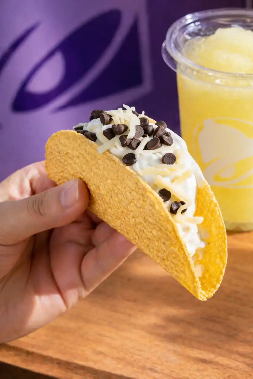 「アイスタコス」は、タコベルの象徴であるタコシェルと、冷たいアイスクリームを掛け合わせたブランド初の革新的スイーツです。タコシェル特有の軽やかなサクサク感と、口の中で溶け出すひんやりアイスのコントラストは、まさに未知の体験。 |