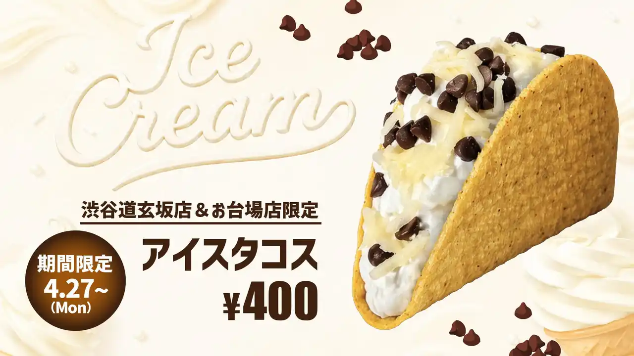 春夏シーズンに向け、タコベルの新たな顔となるスイーツ「アイスタコス」が一部店舗限定で登場します。 |