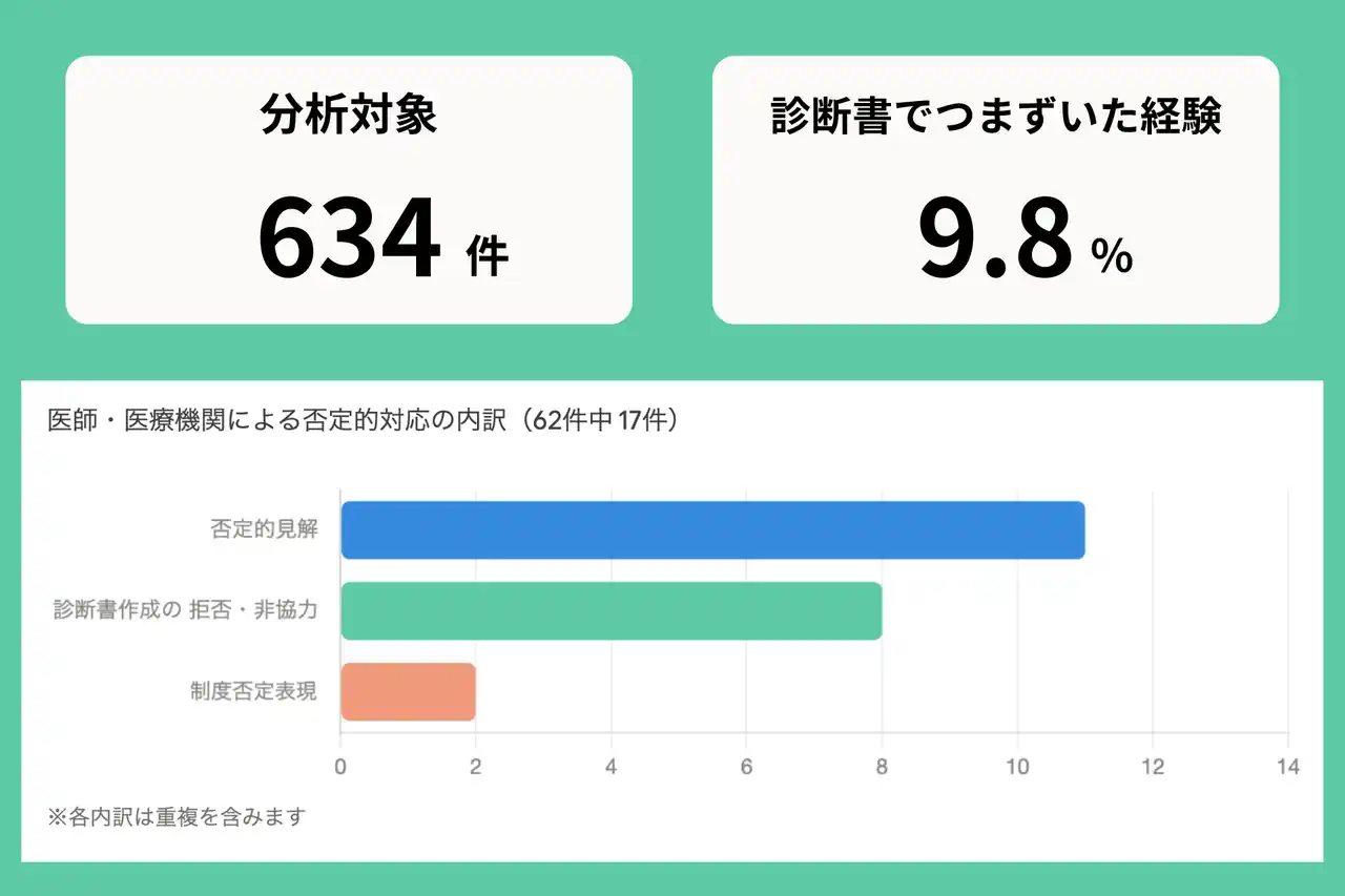 分析方法:各ケースの記述を確認し、医師・医療機関による否定的対応・拒否・非協力の有無を自社基準で集計 |