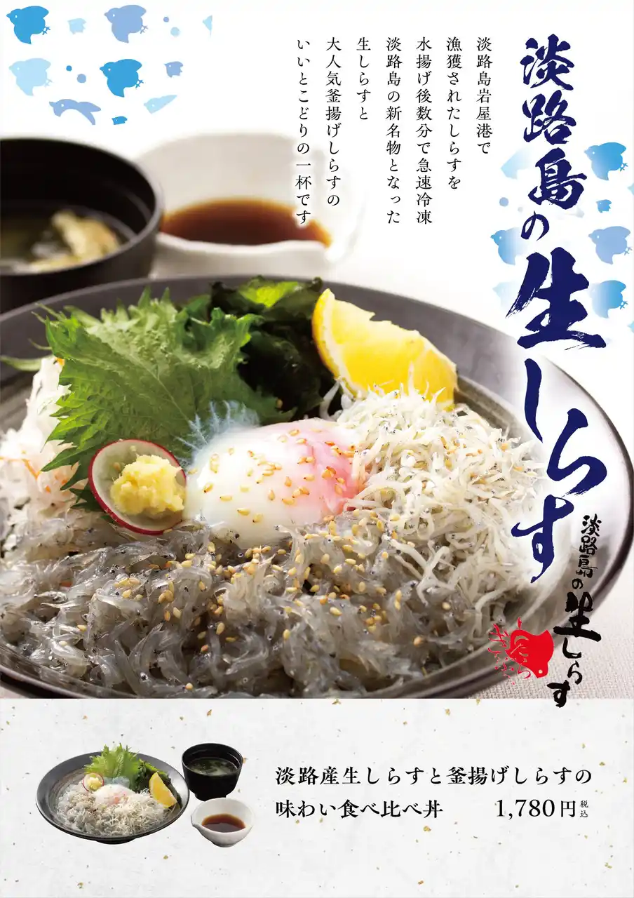 淡路産生しらすと釜揚げしらすの味わい食べ比べ丼 1,780円 |