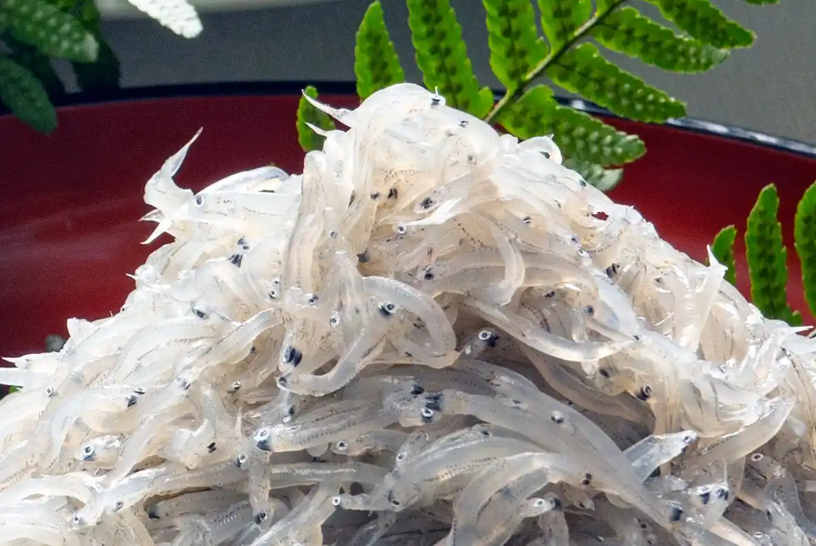 淡路島北端・岩屋港で水揚げされるしらすは、潮流が速く餌が豊富な明石海峡で育つため、 透明感があり、張りが強く、ぷりっとした食感が特徴です。 その美しさから「海の宝石」とも呼ばれています。 |