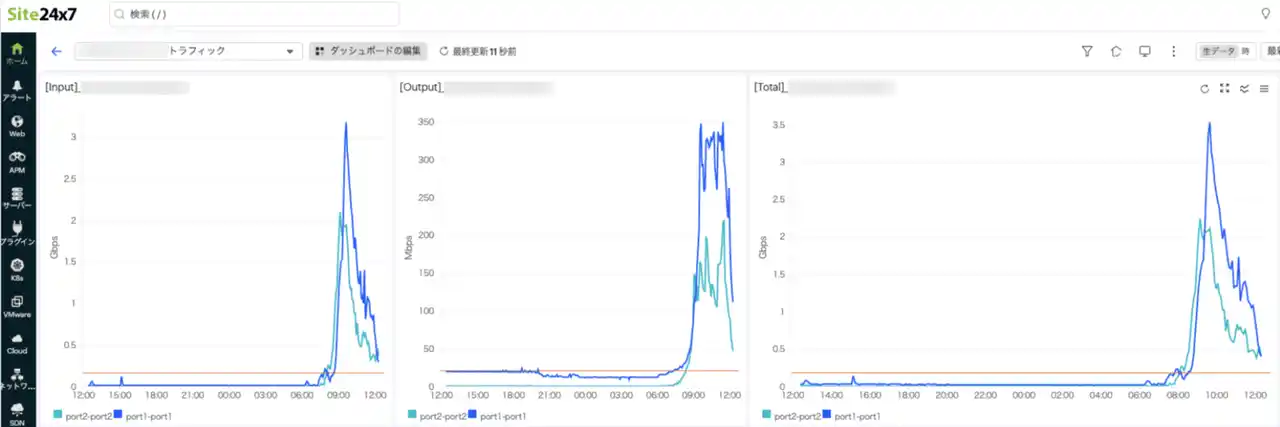Site24x7のトラフィック推移の表示画面(活用イメージ) |