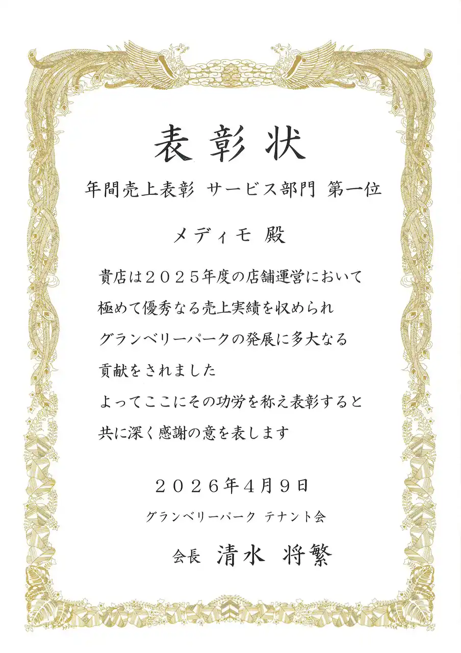 | 南町田グランベリーパークの『medimo(メディモ)』がサービス部門において表彰 |