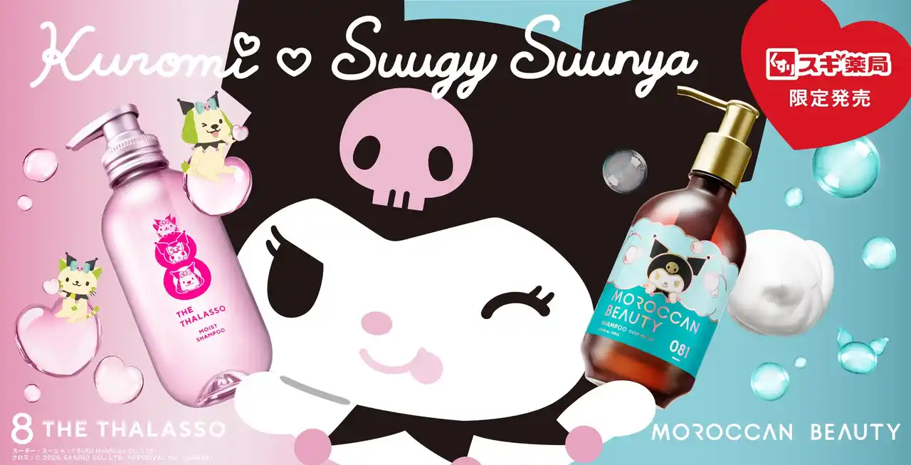 ステラシード株式会社は、スキンケア発想の保水美容液ヘアケアブランド「8 THE THALASSO(以下、エイトザタラソ)」より、スギ薬局グループ公式キャラクター「スーギー&スーニャ」と株式会社サンリオのキャラクター「クロミ」とのコラボレーションデザインアイテムを全国のスギ薬局にて数量限定で発売いたします。 |