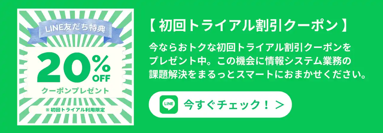 「スマート情シス」初回トライアル利用限定のおトクなクーポンプレゼント |